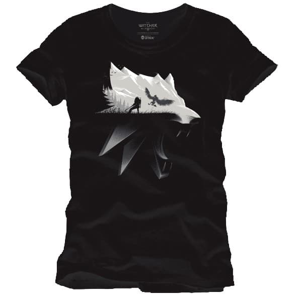 T-shirt The Witcher - Wolf silhouette sort (XL)