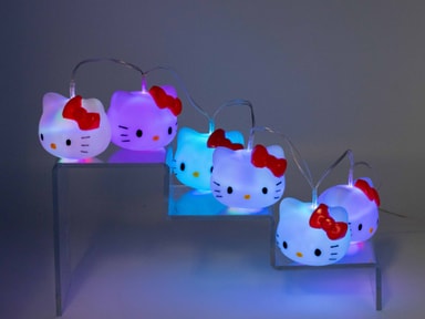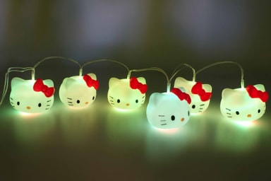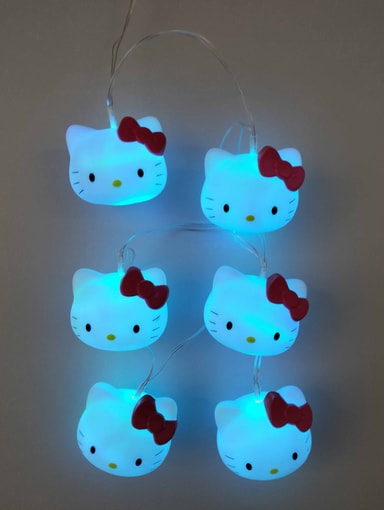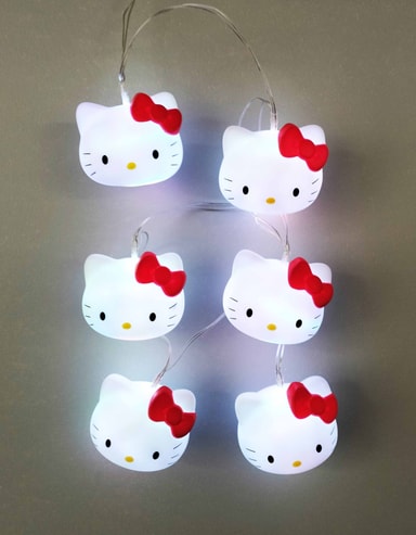 Oplys dit værelse med Teknofun Hello Kitty lyskæden som består af 6 Hello Kitty hoveder og har to lysindstillinger, fast eller blidt skiftende. Indsæt blot 3 AA batterier (medfølger ikke) eller tilslut via USB-C og nyd det hyggelige lys.Læs mere om produktet