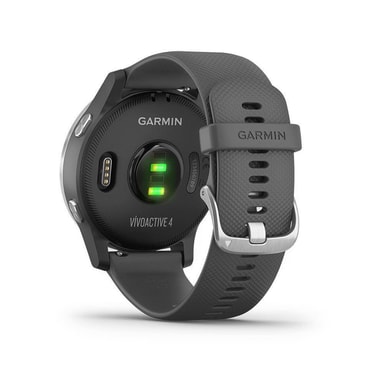 GPS-SMARTWATCH BYGGET TIL DIN AKTIVE LIVSSTIL Stil ind på din krop, og stram op med et smartwatch, der kan registrere det hele og hjælpe dig med at nå dine helse- og træningsmål. Der er ikke noget, der hedder for mange helsestatistikker. Ikke på dette ur Bliv telefonfri, og læg dine perfekt udformede playlister til træning på håndleddet Du løber aldrig tør for muligheder for at bevæge dig med 20+ forudindlæste sports-apps Glem alt om at undersøge, hvordan du udfører goblet squat. Få fulde træninger med animationer på håndleddet Lad din tegnebog blive hjemme og betal fra dit ur i stedet Op til 8 dages batteri holder dig forbundet til dit liv, ikke til din oplader DESIGNET TIL DIT AKTIVE LIV Du har mål, du skal nå, og du har brug for et ur, der kan følge med. Naviger nemt på touchscreenen, og hold dig i gang hele dagen med behagelige, udskiftelige remme. MATERIALER, DER GÅR HELE VEJEN Teknologien i Garmin Chroma Display™, der altid er tændt og kan aflæses i sollys, er beskyttet under robust Corning® Gorilla® Glass 3, som er stærkt nok til, at du kan gå hele vejen under dine aktiviteter. BODY BATTERY™ ENERGIOVERVÅGNING Hold øje med din krops energiniveau i løbet af dagen, så du kan finde de bedste tidspunkter til aktivitet og hvile. PULSE OX SENSOR Pulse Ox-sensoren 1 måler din iltmætning i blodet i løbet af dagen, og mens du sover, for at vise, hvor godt din krop absorberer ilt. STRESSREGISTRERING Find ud af, om du har en rolig, afbalanceret eller stressende dag. Påmindelser om afslapning vil endda bede dig om at foretage en kort vejrtrækningsaktivitet, når du føler dig stresset. TRACKING AF KVINDERS HELSE Brug Garmin Connect™ appen til at følge din menstruationscyklus eller graviditet. Log symptomer, få motions- og ernæringsvejledning med mere. Du kan endda få oplysninger på dit håndled med widget til registrering af menstruationscyklus og Pregnancy Tracking appen. REGISTRERING AF HYDRERING Log dit daglige væskeindtag som en påmindelse om at opretholde væskebalancen. Du kan endda have et automatisk mål for hydrering, som tilpasser sig alt efter, hvor meget sved du mister under dine aktiviteter. VEJRTRÆKNINGSREGISTRERING Hold øje med, hvordan du trækker vejret i løbet af dagen, mens du sover og under vejrtræknings- og yogaaktiviteter. AVANCERET SØVNOVERVÅGNING Få et komplet billede af, hvordan du sover, med en oversigt over dine lette, dybe og REM-søvnstadier samt Pulse Ox 1 og vejrtrækningsdata. HÅNDLEDSBASERET PULS Uret måler hele tiden din puls 2 og giver dig besked, hvis den forbliver for høj eller for lav, mens du hviler dig. Det hjælper også med at måle, hvor hårdt du arbejder under aktiviteter – selv under vand. MINDFUL VEJRTRÆKNING Når du vil slappe af eller fokusere, kan du starte en åndedrætsaktivitet, og dette ur registrerer stress og vejrtrækning, så du får en bedre forståelse af, hvordan du trækker vejret. ANIMEREDE TRÆNINGER PÅ SKÆRMEN Animeret kardio-, styrke-, yoga- og Pilates-træning, der er nem at følge, er forudindlæst på uret, og du kan downloade mere fra Garmin Connect appen. INDBYGGEDE SPORTS-APPS Registrerer alle de måder, du bevæger dig på, med mere end 20 forudindlæste apps til GPS og indendørssport – herunder gåture, løb, cykling, svømning i pool, golf og meget mere. GARMIN COACH Få en personlig løbetræner på håndleddet gratis, så du kan få hjælp til at træne op til din næste 5 km, 10 km eller halvmaraton. BRUGERDEFINERET TRÆNING Lav dine egne træninger i Garmin Connect, og download dem til uret. SMART-NOTIFIKATIONER Modtag e-mails, sms'er og advarsler direkte på uret, når det er parret med en kompatibel smartphone. Du kan endda svare på sms'er, hvis du har en Android™ telefon. MUSIK Download sange og afspilningslister fra dine kompatible musikkonti (abonnement kan være påkrævet). Brug trådløse hovedtelefoner (sælges separat), så du kan lytte uden telefonen. SIKKERHEDS- OG SPORINGSSFUNKTIONER Når uret og telefonen er parret, kan din live-position sendes til dine kontakter manuelt eller – i forbindelse med udendørsaktiviteter – automatisk med indbygget hændelsesregistrering GARMIN PAY Kom nemt gennem betalingskøen og udvalgt offentlig transport med den kontaktløse Garmin Pay betalingsløsning 4 via deltagende udbydere. CONNECT IQ STORE Giv dit ur personlighed ved at downloade apps, widgets, urskiver med mere. Det er nemt og – endnu bedre – det er gratis. BATTERILEVETID Hold dig på farten længere med en batterilevetid, der varer op til 8 dage i smartwatch-tilstand og op til 6 timer i GPS-tilstand med musik. VANDTÆTHEDSKLASSE Dette ur er vandtæt op til fem ATM hvilket gør det perfekt til en svømmetur, et brusebad eller en dag i spaen. 1 Dette er ikke medicinsk udstyr og er ikke beregnet til diagnosticering eller overvågning af sygdomme, se Garmin.com/ataccuracy. Pulse Ox er ikke tilgængelig i alle lande. 2 Nøjagtighed for aktivitetstrackere. 3 Parret med en kompatibel telefon. For krav og begrænsninger vedrørende sikkerheds- og sporingsfunktioner henvises til Garmin.com/safety. 4 Se oplysninger om understøttet land, betalingsnetværk og udstedende bank. Android™ er et varemærke tilhørende Google LLC. SPOTIFY og Spotify logoet er nogle af de registrerede varemærker tilhørende Spotify AB. Amazon Music og alle tilknyttede logoer og varemærker tilhørende Amazon.com, Inc. eller dets associerede virksomheder. I kassen vívoactive® 4 Opladnings-/datakabel Quick guide