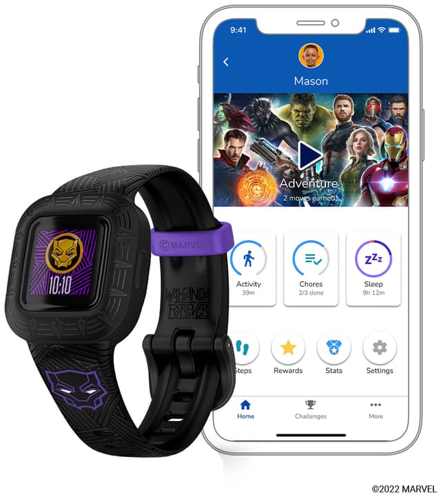 Aktivitetsmåleren motiverer desuden dine børn via Adventures-appen, som indeholder turbaserede spil afhængigt af urets tema. Som forælder kan du indstille timers for lektier og husopgaver, tildele specifikke opgaver mm., og efterhånden som dine børn når deres mål om 60 minutters daglig aktivitet, kan du belønne dem.