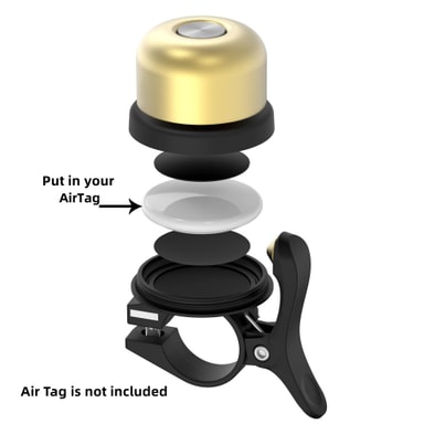Ringeklokke til cykel med skarp og klar lyd. Den er nem at sætte på cykelstyret og passer til styr med en diameter på 2,2 cm. Låget kan drejes op for at placere et airtag i klokken. Lukkes tæt, så senderen ikke bliver beskadiget af forskellige vejrforhold.