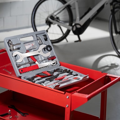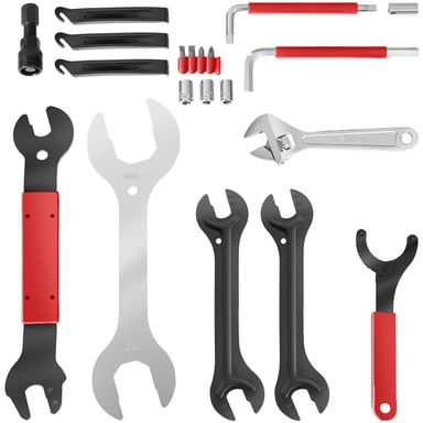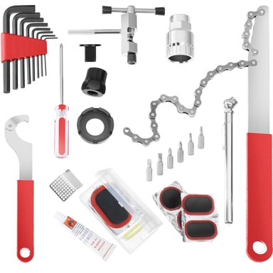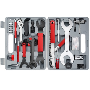Med det alsidige cykelværktøj fra tectake er du altid rustet til at klare alle almindeige reparationer på cyklen. Det praktiske værktøj ligger godt i hånden og muliggør, at du kan arbejde præcist med optimal kraftoverførsel. De præfabrikerede slidser til værktøjet holder indholdet på plads ved transport og gør det også nemt at lægge dette værktøjssæt på plads efter brug. Den lette og robuste kuffert har afrundede hjørner samt en håndterlig størrelse og kan nemt bæres i det praktiske håndtag, så det bliver nemt at transportere det smarte cykelværktøj.