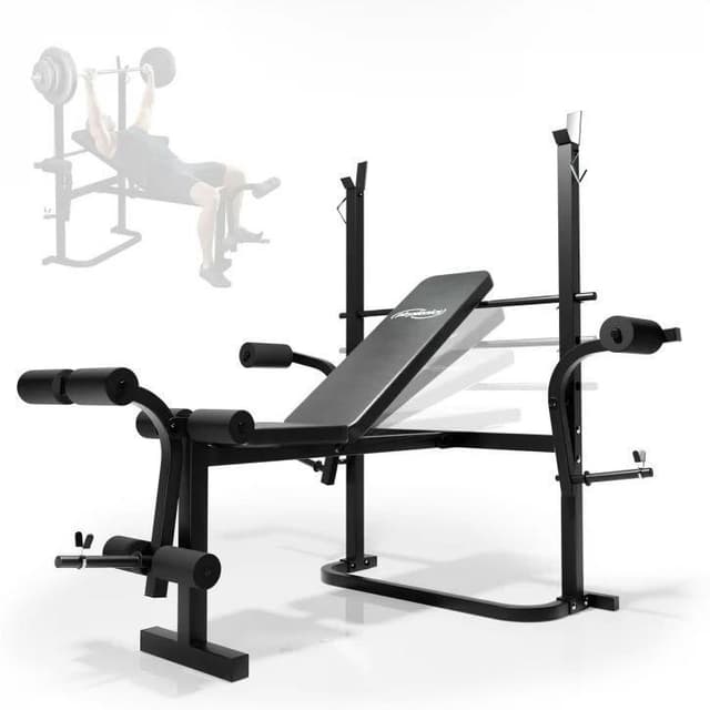 Bænkpres der giver dig mulighed for at træne både lige og skrå bænkpres for at få et slag på både øvre og nedre brystmuskler. Udover vægtstativet og muligheden for bænkpres giver denne multibænk mulighed for at træne brystflyes i flyestationen og både siddende benspark og vandrette benkrøller. En meget komplet træningsbænk. Alsidige træningsmuligheder med multi-bænken: Skrå og lige bænkpresser Bryst flyes Benspark Bencurl Andre oplysninger Maksimal belastning benspark / leg curl station: 50 kg Maksimal belastning flyestation: 25 kg pr. side Maksimal belastning vægtstangsstativ: 100 kg Anbefalet brugerlængde: Max 190 cm Samlet maksimal belastning: 255 kg Mål (LxBxH): 135x128x112 cm Højde på vægtstangsstativ: 112 cm Vægt af multibænken: 18 kg Materiale: Stålramme Sæde og rygpude Justerbar ryghøjde: 50-86 cm Mål rygpuden: 75x25 cm Sædepude højde fra gulv: 50 cm Mål sædepuden: 29x25 cm Polstring: Skum Kunstigt tøj Fodbetræk af plast Farve: Sort