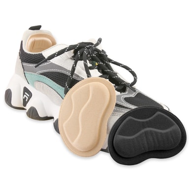 Selvklæbende hælbeskyttere: Praktiske indlæg af blødt skum og tekstilmateriale, som forhindrer skoene i at gnide på hælene.