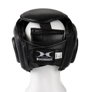 Hovedbeskyttelsen Protect er fremstillet af læder af høj kvalitet og foret med gråt kunstlæder. Protect er den optimale hovedbeskyttelse til både træning og konkurrence. Visiret er fremstillet af polycarbonat af høj kvalitet. Dette er af meget høj kvalitet og bruges i alle ekstreme situationer og brancher, såsom inden for industrien, hvor mekanisk beskyttelse og splintbeskyttelse er af afgørende betydning. Det er kendetegnet ved høj holdbarhed, slagstyrke, stivhed og hårdhed. I forhold til metalvisirer oplever man heller ingen begrænsnings af synsfeltet! Velcrobåndet på bagsiden af hovedet gør, at hovedbeskyttelsen Protect fra HAMMER BOXING hurtigt kan tages af og på og desuden suppleres individuelt med boksehandsker! HAMMER BOXING hovedbeskyttelsen Protect garanterer den højeste kvalitet og perfekt pasform til enhver træningssituation. Størrelse S: 50 cm Størrelse M: 54-55 cm Størrelse L 56-58 cm