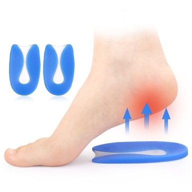 Stødabsorbering: Disse hælpuder har et U-formet design lavet af blødt silikonemateriale, der giver fremragende stødabsorbering for at beskytte dine fødder mod stød under aktiviteter.