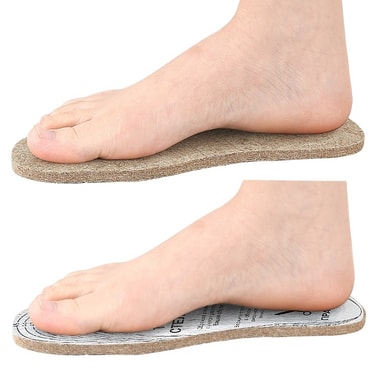 Effektiv stødabsorbering: Nyd forbedret stødabsorbering med 6,5 mm tykkelsen af disse indlægssåler. Uldfiltmaterialet absorberer effektivt stød og reducerer belastningen på dine fødder, ankler og knæ. Denne funktion er især gavnlig for personer, der tilbringer mange timer på deres fødder eller deltager i aktiviteter med høj belastning. Uanset om du går, løber eller står, vil disse indlægssåler give overlegen stødabsorbering og beskyttelse, minimere ubehag og forebygge skader. De stødabsorberende egenskaber gør dem velegnede til sportssko, vandrestøvler og hverdagsfodtøj.