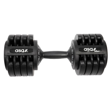Justerbar håndvægt fra mærket ASG, som går helt op til 20 kg. Håndvægten er nemlig justerbar så du selv kan vælge, hvor hård din træning skal være. Slip for at have en masse forskellige håndvægte liggende. Vælg mellem 3, 7, 11, 15 eller 20 kg på denne håndvægt!
