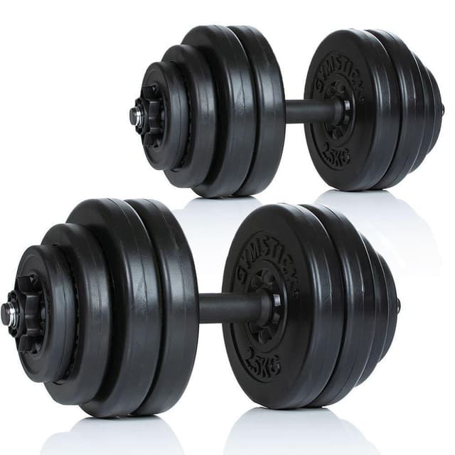 Gymstick Vinyl Dumbbell Set 15 kg er af holdbar og lugtfri vinyl og håndvægtens vægt kan være alt fra 2-15 kg. Blød vinyl efterlader ingen mærker på gulvet. Håndvægtsenderne har komfortable gevindlåse for let udskiftning af vægtene. Indeholder 2 x håndvægtstang (450 x 25 mm) 1 kg 8 x 2,5 kg vinylfladevægt 4 x 1,5 kg vinylfladevægt 4 x 0,5 kg vinylfladevægt 4 x gevindlås