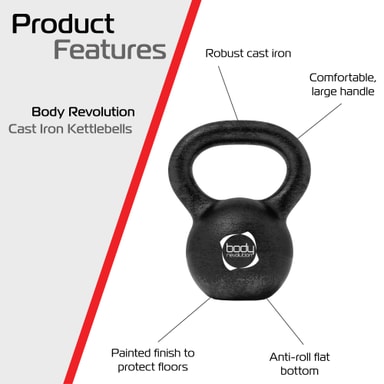 Denne kettlebell fås i vægtintervaller fra 2 kg til 28 kg og tilpasser sig alle træningsniveauer og mål. Uanset om du starter din fitnessrejse med lettere vægte eller går videre til mere avancerede styrketræningsrutiner, tilbyder den fleksibiliteten til at vokse i takt med din træning. Body Revolution Cast Iron Kettlebell er ideel til fuldkropstræning, fedtforbrænding og muskeludvikling og et must-have for alle, der ønsker at opnå varige fitnessresultater.
