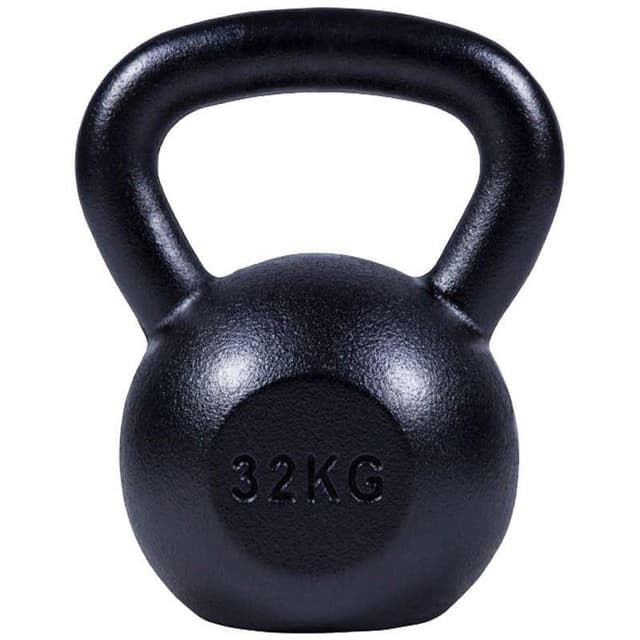 Sort støbejern kettlebell fås i vægte fra 4 kg til 32 kg. Netop denne model fås også i farverne guld og sølv/grå. Denne kettlebell er støbt i ét stykke, har en flad bund for stabilitet og vægtmarkering på fronten.