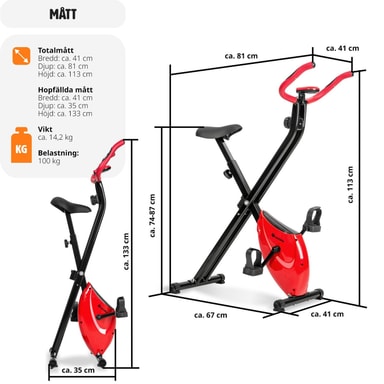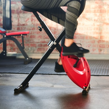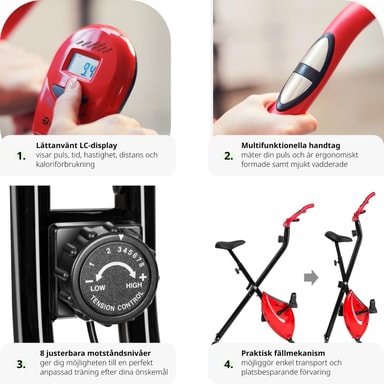 Træn effektivt dine ben med den individuelt justerbare FitX motionscykel fra tectake. Den solide stålrørskonstruktion med højdejusterbar sadel, polstrede håndtag samt skridsikre pedaler og gummierede endestykker sikrer høj komfort og maksimal sikkerhed. Det klare LCD-display på denne motionscykel registrerer alle vigtige værdier såsom puls, tid, distance, hastighed og kalorieforbrug. Takket være den praktiske foldefunktion kan det praktiske sportsudstyr gemmes væk for at spare plads efter brug - få din krop i form med den støjsvage FitX motionscykel fra tectake.