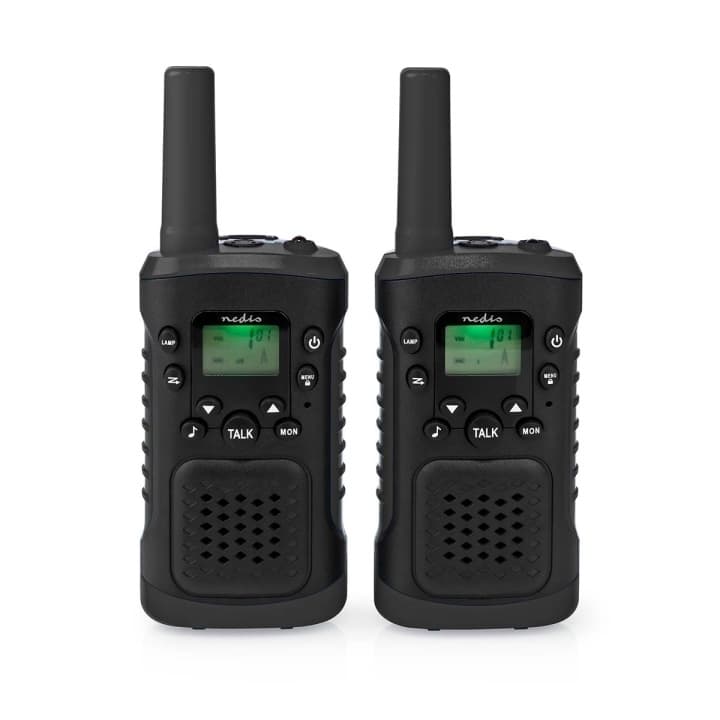 Nedis Walkie-talkie Set | 2 Håndsæt | Op til 6 km | Frekvens kanaler: 8 | PTT / VOX | 180 min | Hovedtelefonudgang | 2 Headsets | Sort