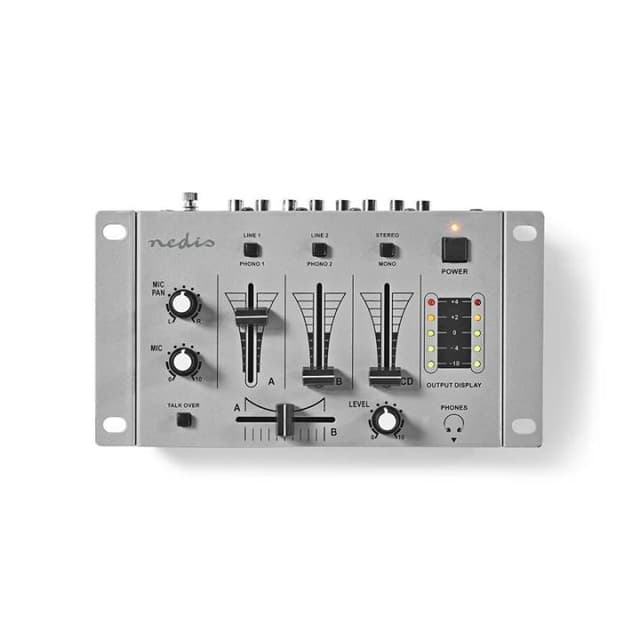 Enkel och kompakt DJ-mixer, lämplig för anslutning och mixning av 3 ljudkällor.• 3 stereokanaler• Utgång med stereo/monoväljare• Crossfader• Talkover-funktion• 2x 5 LED-nivåmätareIngångar:• 2x RCA• 3x Line• 2x MikrofonLæs mere om produktet