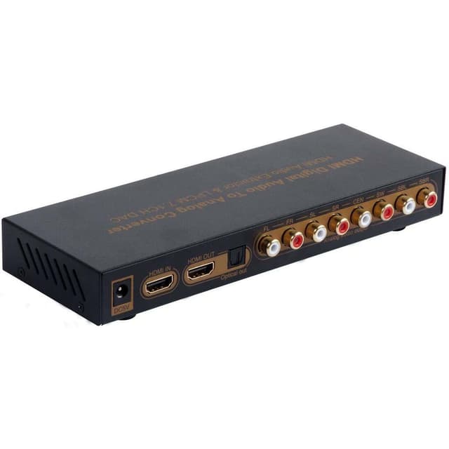 Med NÖRDIC SGM-177 HDMI Extractor kan man separarera ljudsignaler från HDMI signalen i input och omvandlar den till digital SPDIF eller analog 2CH, 5.1CH och 7.1CH analoga ljudsignaler. 192KHz audio sampling rate. Extractor drivs av medföljande AC adpter 5V/1A(ingår ej).Denna HDMI-ljudomvandlare kan hjälpa dig att separera digitalt ljud i HDMI-signalen till optisk SPDIF-utgång, och samtidigt konvertera digital ljudström LPCM via högkvalitativ intern DAC för att producera flerkanaligt analogt ljud till din förstärkare. Stöd 2CH / 5.1CH / 7.1CH och annan LPCM digital ljudsignalkonvertering. Den kan anslutas till högupplösta HDMI-utgångar på många enheter som DVD-spelare, Blu-ray-spelare, nätverksspelare, digitalboxar, PS4/5, Xbox360 och PC.EDID -omkopplare för ljudutmatningslägeDenna enhet är utrustad med EDID-omkopplare för att manuellt välja ljudutmatningsläge mellan flerkanalig, stereo (2CH) och tyst:Multi: I detta ljudläge matar alla RCA -portar ut 5.1/7.1CH -ljud. Optiska portutgångar 2 -kanals LPCM digitalt ljud. Och HDMI-portens utgång har genomsläpp av LPCM 5.1/7.1.2CH: Växla till 2CH -läge. Så både främre vänster/höger RCA -portar, optisk port och HDMI -port ger stereo analogt ljud.Mute: Växla till den här modellen, ingen RCA och ingen optisk ljudutgång. Endast Denna HDMI-ljudavkodare är en utmärkt enhet för avkodning av okomprimerad LPCM 5.1 och 7.1 surroundljudsutmatning inbäddad från HDMI-utgång från PS5/4, Wii U, Blue-ray-spelare.För Dolby- och DTS-ljud kan sådant bitströmsljud inte avkodas av denna enhet och kan bara skickas direkt via dess HDMI-utgång.Stöder 1 HDMI HD ingång och 1 HDMI HD utgång. Synkront separerade HDMI-ljudsignaler, stöder 1 SPIDF fiberoptisk digital ljudutgång och stöder flerkanalig RCA analog ljudutgång.HDMI stöder 12-bitars djupfärgad FULL HD-, 3D- och 4K2K-videoHDMI stöder CEC -funktionStöder konvertering av flerkanaligt LPCM digitalt ljud till analog ljudutgång, upp till 7,1 kanalerMed 24bit / 192KHz DAC -ljudkonverteringschipLED -indikering för LPCM -ljudformatStöder tre ljudutmatningslägen, som kan växlas mellan flerkanaliga (Multi), stereo (2CH) och mute, lämpliga för olika applikationerHögkvalitativ ljudkvalitet, lågt brus