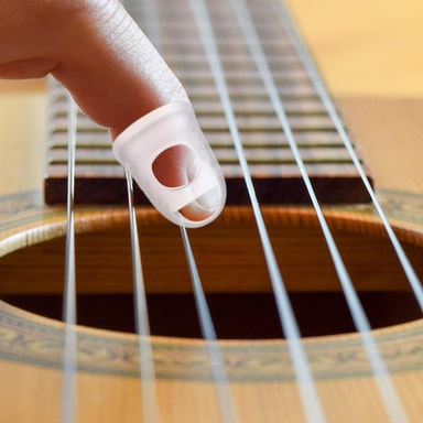 Beskytter fingrene mod smerter: Fingerbeskytterne virker som en beskyttende barriere mellem dine fingerspidser og guitarstrengene. De reducerer effektivt tryk og friktion på fingrene, så du kan øve dig i længere perioder uden at opleve smerte eller ømhed.