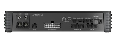 Audison AF M8.14 bit er en 8 kanals forstærker med høj lydkvalitet, 90W x 8 i 4Ω eller 140W x 8 i 2Ω* med den audiofile lyd fra den nyeste generation af Audison D-klasse teknologi. Højere koblingsfrekvenser, stejlere filtrering og komponenter med højere tolerance giver en lyd, der ligger over og overgår forventningerne til klasse D - i en utrolig kompakt størrelse! Dette er kombineret med en aktiv DSP, der arbejder ved 24 bit/96 kHz, hvilket udvider frekvensområdet op til 40 kHz og giver den eftertragtede High-Resolution-certificering. Med brokobling af kanalpar opnår man 280W x 4 i 4Ω, hvilket garanterer fleksibel og kraftfuld ydelse.
