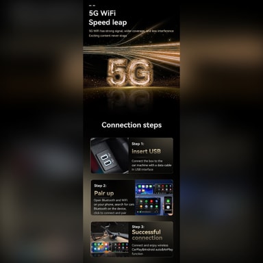 Problemfri tilslutning: Oplev ubesværet integration med din bils eksisterende system. Denne 3-i-1 adapter konverterer problemfrit kablet CarPlay til trådløs, hvilket muliggør trådløs CarPlay, Android Auto og Mirror Link funktionalitet. Nyd et ryddeligt instrumentbræt og øget bekvemmelighed. Denne adapter er kompatibel med original bil MIC og touchscreen-kontroller og sikrer en jævn overgang til en trådløs oplevelse. Perfekt til brugere af Apple CarPlay og Android Auto, der ønsker at opgradere deres underholdning i bilen uden at udskifte hele systemet. Stream musik, naviger med lethed og få adgang til dine foretrukne apps trådløst. Denne adapter er kompatibel med køretøjer, der allerede har fabriksmonteret kablet CarPlay.