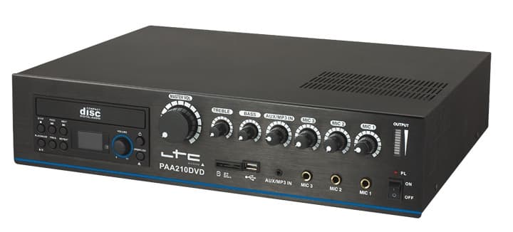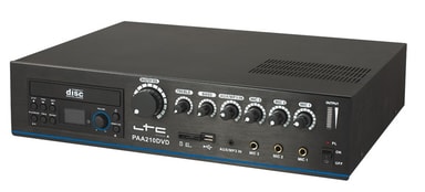 4-kanals desktop pa forstærker - 210w praktisk pa forstærker, der ikke fylder meget. indbygget cd-afspiller samt afspilning direkte fra usb og sd-kort. oplagt i barer, restauranter ect.