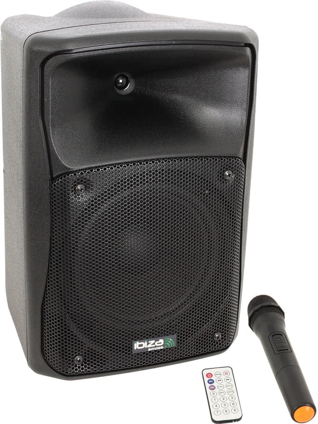 Aktiv højttaler med indbygget batteri. Du kan afspille musik via CD, Bluetooth, USB og SD kort. Lille og kompakt højttaler. CD player. Bluetooth. Fjernbetjening medfølger. Inputs : USB, SD, AUX, 2x mic. Ekko funktion. 1 x håndholdt mikrofon. Repeat functions & random play.