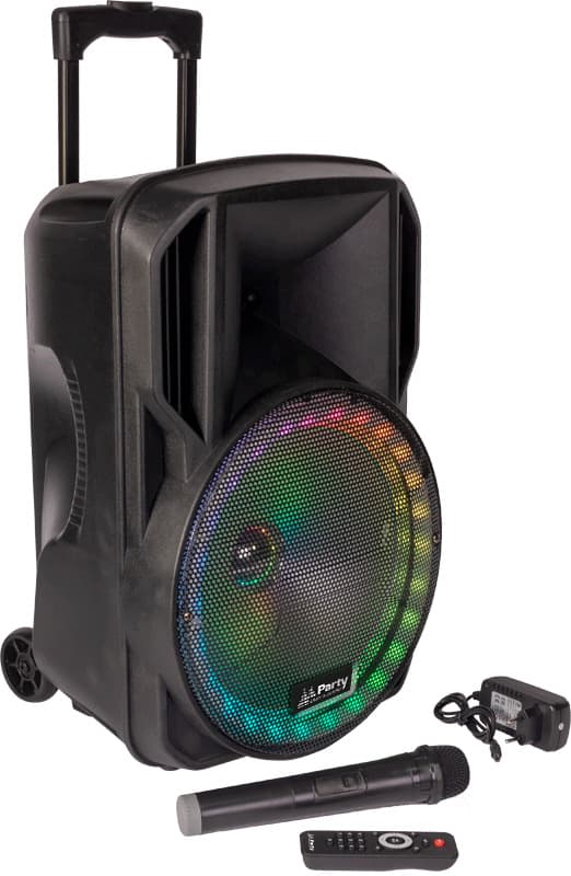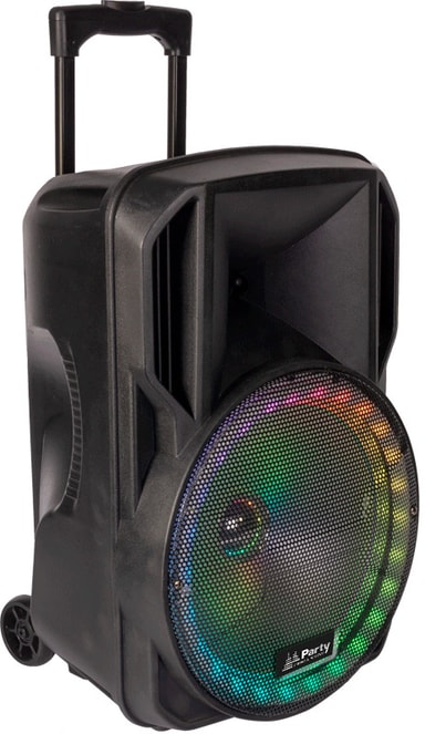 Party Højttaler 400 Watt med LED belyst bas, USB, Bluetooth og mikrofon.