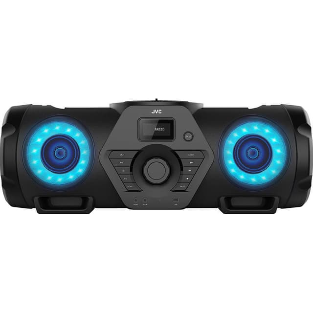 Jvc boomblaster med cd, usb og bluetooth audio streaming 60 watt effekt 2 x 160 mm subwoofer + 2 x 100 mm fullregister højttalere fm rds-radio, cd-afspiller, usb-port, bluetooth-lydstreaming mikrofon- og guitarindgang (bagside) 3,5 mm linjeindgang og 3,5 mm hovedtelefonstik (frontpanel) multi-line dot matrix display flerfarvede lyseffekter (forskellige tilstande) fjernbetjening skulderrem medfølger batteripakke kan købes separat større er bedre når det gælder ydeevnen for en boomblaster, handler det om kraft og højttalerstørrelse. Med sin kraftfulde 60 watt forstærker og to 16 cm subwoofere plus to 10 cm fullregister højttalere tilbyder denne boomblaster en imponerende og kraftig lyd! Alle højttalere er beskyttet af massivt metalgitter, og subwooferne er også beskyttet af håndtagene på siden af boomblasteren. Som du vil! Mulighederne for at bringe din yndlingsmusik til boomblasteren er næsten uendelige! Foruden moderne kilder som bluetooth-streaming eller en usb-forbindelse, kan du også lytte til dine cder ved hjælp af top-loader cd-afspilleren på din boomblaster eller skifte til den integrerede fm-rds-radio. Tilslut dine enheder! Ud over den nævnte cd-afspiller, bluetooth-streaming og den integrerede radio kan du også tilslutte eksterne musikafspillere via et 3,5 mm line-in-stik. Hovedtelefoner kan også tilsluttes via relevant stik direkte ved line-in. På bagsiden af boomblasteren finder du stik til en mikrofon eller en guitar. Begge med en 6,3 mm stik og begge individuelt kontrollerbar. Power til dine udendørs eventyr ud over strømforsyningen til hjemmebrug eller hvor du end finder en stikkontakt, kan du også købe en batteripakke til kraftfuld underholdning i timevis uden ledning med din boomblaster. Lithium ion-batteripakken installeres på bagsiden af boomblasteren og kan oplades, mens det er installeretet i boomblasteren ved blot at tilslutte boomblasters-netledningen når du er hjemme. Den kraftige 14,8v / 5000mah batteripakke giver let strøm til en hel dag udendørs! Bærbar lyd den medfølgende skulderrem kan let fastgøres til kabinettet. Udstyret med denne rem kan du tage boomblasteren med uanset hvor du skal hen. Dit personlige lysshow begge fullrange frontspeakers fra boomblaster er oplyst med moderne led-teknologi. Ud over forskellige farver kan du også ændre positionen, hvordan lysene bevæger sig og ændres. Fra en meget stille kontinuerlig blå belysning til et vildt og levende show, du vælge, hvad du ønsker. Hvis du overhovedet ikke har brug for lyset kan du naturligvis slukke det helt. Tekniske specifikationer cd-afspiller afspilleligt medie / cd / mp3-format cd / cd-r / rw ja / ja mp3 ja med tag program / random afspilning ja (/ ja gentag afspilning ja (en / mappe / alle) netværk bluetooth (r) trådløs teknologi bt version 5.0 power class class 2 sendeeffekt 5.42dbm rækkevidde ca. 10 meter (kan variere afhængigt af miljøet) frekvensbånd 2,402 ghz - 2,48 ghz bluetooth a2dp ja bluetooth avrcp ja forstærker effektudtag (i alt) 60w power output (rms, 10% thd) 60 watt rms output power (2 x 20w + 2 x 10w) frekvensområde 30 hz - 20 khz (+/- 3db) lyd-mode rock - jazz - pop - klassisk &ndash flad bas - 2 etaper tuner fm bånd fm rds fm tuning range 87,5 mhz - 108 mhz forudindstillede stationer 30 terminal lyd i ja type 3,5 mm jack (foran) hovedtelefon udgang ja type 3,5 mm jack (foran) usb-host (2,0 i full speed) ja mic / guitar input ja / ja type 6,3 mm uafhængige indgange på bagsiden usb-host afspillelige formater mp3 med tags program / random afspilning ja) / ja gentag afspilning ja (en / mappe / alle) generel karaoke-funktion ja ur / forudindstillet timer ja sleep timer ja fjernbetjening ja strømkilde ac ac 100v-240v, 50hz / 60hz strømforbrug < 0,5 watt i standbytilstand, maks. 60 watt dimensioner (b x h x d) (mm) 696 x 261,5 x 265 vægt (kg) 7,24 højttalere type 2 x 10 cm full range og 2 x 16 cm subwoofere