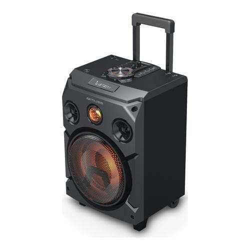 Muse M-1915 DJ PARTY BOX er en meget vellykket bærbar Bluetooth-højttaler. Med det teleskopiske håndtag er det en ven, der er let at tage med sig på gaden, i haven eller til sportsbegivenheder. Muse M-1915 DJ PARTY BOX er en meget vellykket bærbar Bluetooth-højttaler. Med det teleskopiske håndtag er det en ven, der er let at tage med sig på gaden, i haven eller til sportsbegivenheder. Det indbyggede genopladelige batteri giver dig en masse sjov i flere timer, uden at du behøver at genoplade det. Via Bluetooth kan du streame din yndlingsmusik og med den tilsluttede mikrofon kan du synge med! Nyd denne kompakte festboks og have det sjovt sammen. Der er en USB-port, der oplader din telefon. Endnu en USB-port til MP-3-afspilning.