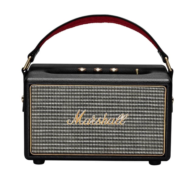 Klassisk vintage-design: Kilburn højttaleren fra Marshall har et klassisk design med en vintage front, guldfarvet detaljer og det ikoniske Marshall logo.