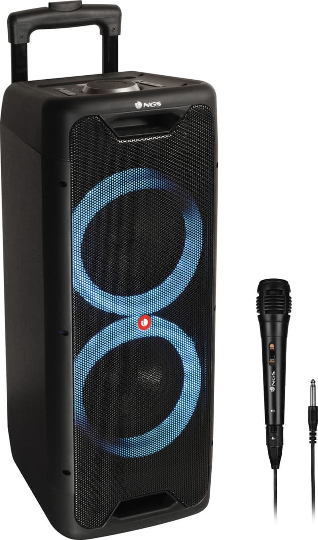 Tag festen med hvor som helst med denne NGR bærbare højttaler Wild Jungle 1 med en maks. effekt på 200Watt. Med multifarvede lyseffekter, karaoke og 8 timers musik er du garanteret en festlig aften.Læs mere om produktet