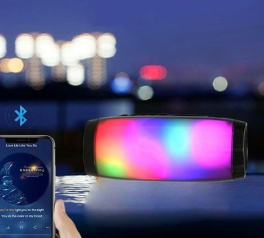 TG-157 Bluetooth högtalare, har en högtalare framtill och ledljus på baksidan. Ledljusen kommer i en mängd olika färger och blinkar i takt med musiken! En perfekt stämningshöjare inomhus till fest, middag eller bara en myskvällen. Högtalaren är bärbar med upp till 10 meters räckvidd för bluetooth så du kan även ha med den till stranden, trädgården eller på camping!
