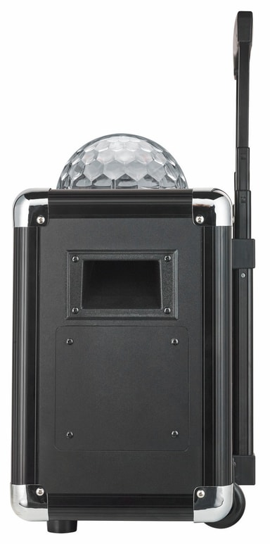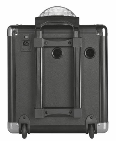Bærbart, robust design: De to hjul og det udtrækkelige håndtag giver dig mulighed for at flytte den trådløse Fiesta Disco højtaler nemt. Udover det, kan Disco nemt løftes ved hjælp af de to håndtag på siden. Det robuste design sikrer, at denne højttaler kan modstå hårdt brug!