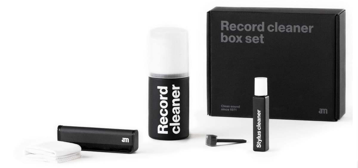 Praktisk rensesæt til dine vinylplader. AM Records Cleaner Box Set indeholder: 1 stk. 200ml rensvæske m. klud.  1 stk. Antistatisk LP rensebørste.  1 stk. Stylus Cleaner børste m. rensevæske.  1 stk. Pickup ...Læs mere om produktet