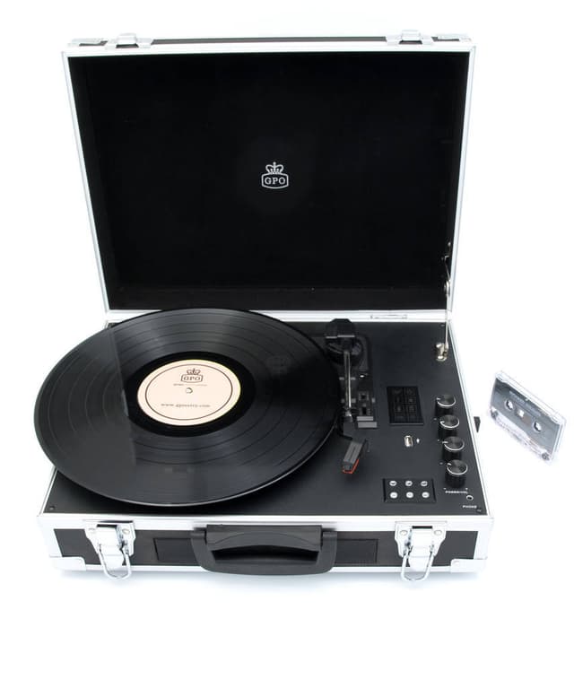 En fuldt transportabel og cool retro pladespiller komplet med pick-up, kassetteafspiller og genopladeligt batteri. Så nu kan du tage din musik, uanset hvor du skal hen. GPO FLIGHT pladespilleren har 2 indbyggede højttalere, en bluetooth-sender samt genopladelig batteri. Du kan optage alle dine Vinylplader eller kassetter til en USB-stick.