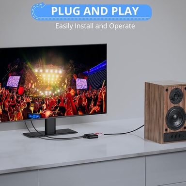 FunktionerKonverterer digital optisk lyd til analog stereoHøjopløst lyd op til 192kHz/24-bitForsinkelsesfri lydoverførsel, velegnet til gamingPlug and play, ingen drivere krævesIdeel til at forbinde nye enheder til ældre lydsystemerSamtidig lydudgang via RCA og 3,5 mm