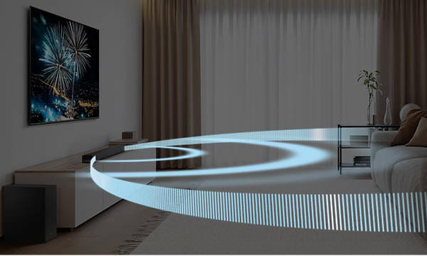 Soundbar med trådløs subwoofer, som tilpasser lydgengivelsen efter typen af indhold. Den forbindes let til dit Samsung TV og betjenes nemt med TV'ets fjernbetjening.
