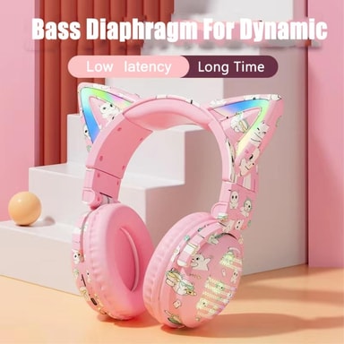 Graffiti RGB Cat Ear Bluetooth Headset Aftagelig mikrofon Stereo Musik trådløse hovedtelefoner - SortBluetooth 5.3, er mere stabil, og hele processen mister ikke lyd3D rumlige lydeffekter, genopretter den delikate følelse af lyd40MM stødenhed, profes
