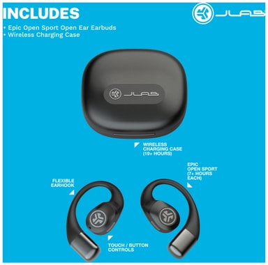• JLab Epic Open Sport true wireless in-ear hovedtelefoner (sort)