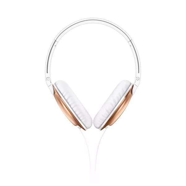 Kraftfulde, vinklede 32 mm-elementer giver klar og tydellig lyd og dyb, fyldig bas. Flad og kompakt, foldbar model gør dem enkle at tage med sig. Bløde ørepuder og vinklede elementer er idelle for langvarig komfort. På en let envendte fjernkontrol kan du afspille/pause melodier og besvare samtaler med et enkelt knaptryk. Takket være et fladt kabel kludrer hovedtelefonerne sig ikke, og trækaflastningen gør at de holder længere. Det tyndt, elegante design af hovedbåndet og de metalliske, ovale ørekåber skaber en ikonisk, silkeglat form.