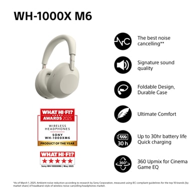 Sony WH-1000XM6 trådløse around-ear høretelefoner (platinum silver)