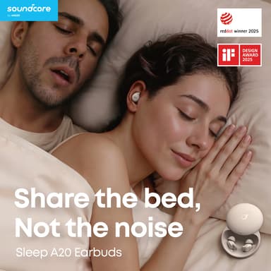 Sleep A20 kombinerer soundcore’s Air Wing-teknologi med et 3D-ergonomisk design, indkapslet i ultrablødt materiale, som giver trykfri komfort – selv når du sover på siden.