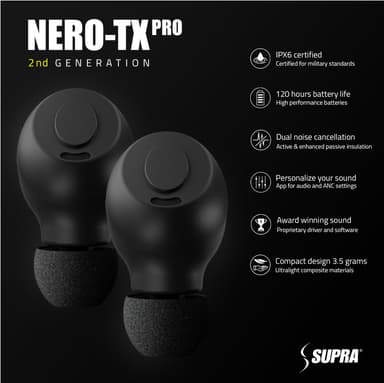Disse trådløse Supra NERO-TX PRO høretelefoner leverer højkvalitetslyd, aktiv støjblokering, 7 timers spilletid pr. opladning og et sved- og stødbestandigt design.Læs mere om produktet