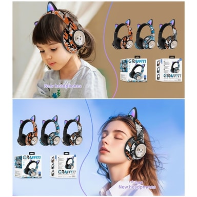 【Kreativt Graffiti Camouflage Design】Unikke over-ear hovedtelefoner med et iøjnefaldende graffiti camouflage mønster til stilbevidste brugere.