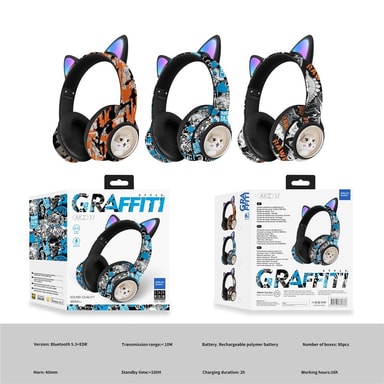 AKZ AKZ-37 Graffiti Design Trådløse Bluetooth Hovedtelefoner FM Radio Musik Headset med Mikrofon - Sort【Avanceret Bluetooth Kompatibel Teknologi】Med Bluetooth kompatibel V5.3+EDR for stabil og effektiv trådløs forbindelse med forbedret datahastighed.Læs mere om produktet