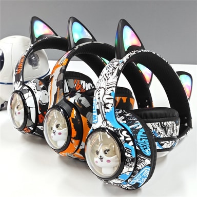 Trådløse On-Ear Hovedtelefoner Katteøre Bluetooth FM Radio Headset Mikrofon - Sort
