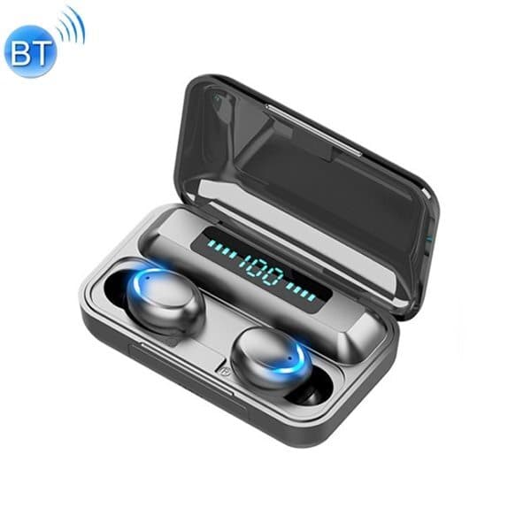 True Wireless Bluetooth Headset med ladefoderal og digitalt display.