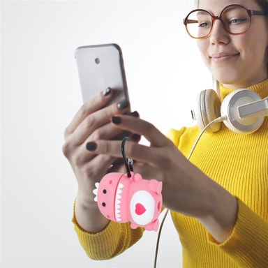 Etuiet tilbyder din hovedtelefonboks allround beskyttelse mod stød, ridser og snavs takket være den robuste silikone og perfekte pasform. Udover etuiet får du et ekstra vedhæng, så du nemt kan sætte det fast på tasker, tøj eller en nøglering. Takket være fordybningen i bunden af æsken, skal hovedtelefonerne ikke tages af for at lade op.
