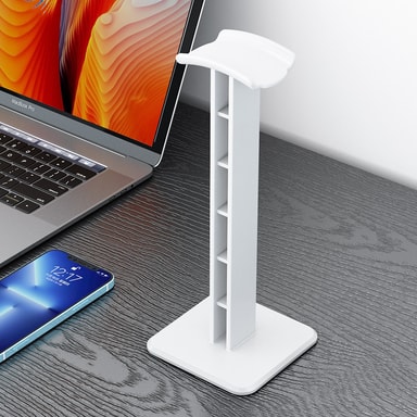 Det här hörlursstället är ett bra alternativ för att visa dina coola hörlurar för utställning och hålla ditt skrivbord rent och snyggt istället för att låta hörlurarna ligga med trassliga och trassliga sladdar.