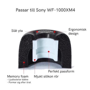 Memory Foam ørepuder til Sony WF-1000XMF giver bedre pasform og bedre støjreduktion, fordi de isolerer lyden bedre end standard Sony WF-1000XMF ørepropper. Derudover tilpasser Memory Foam ørepuder sig til øret, hvilket gør dem behagelige at bruge hele dagen.
