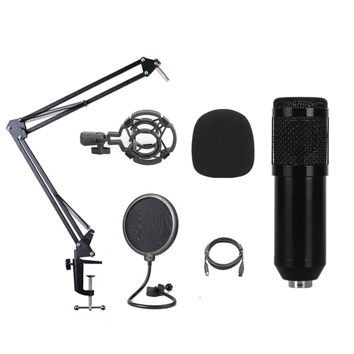 Kondensatormikrofon med stativ 6 dele Sort