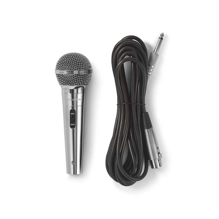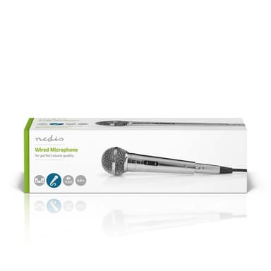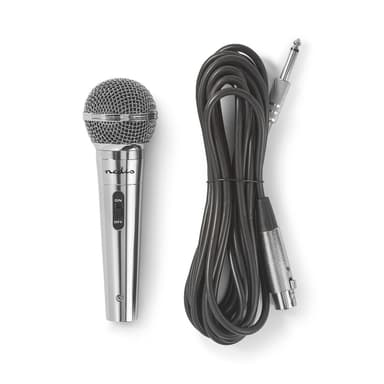 Nedis Mikrofon | Cardioid | Aftageligt kabel | 5.00 m | 80 Hz - 13 kHz | 600 Ohm | -72 dB | Indbygget on/off-knap (tænd/sluk) | Metal | Sølv